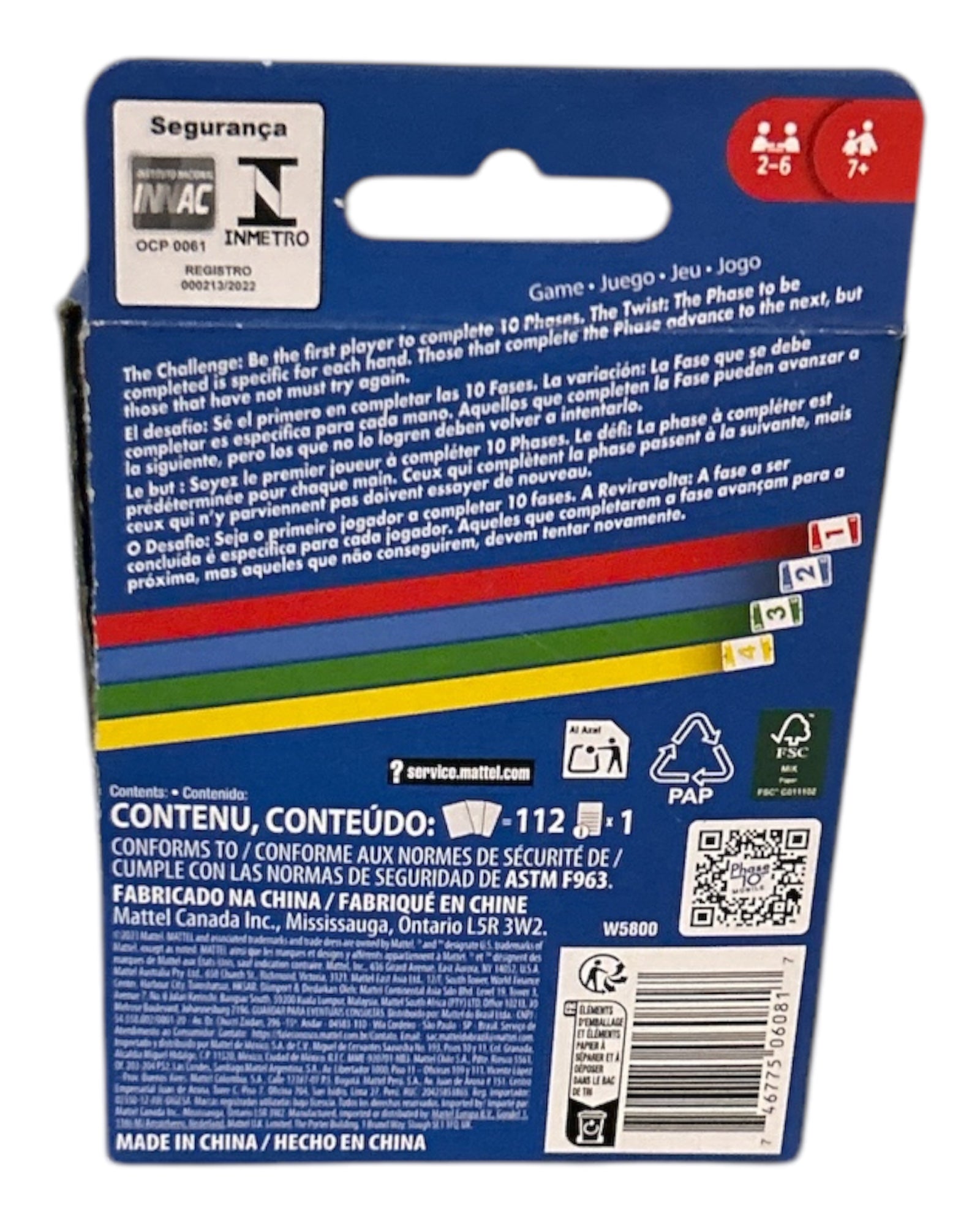 Phase 10 est un classique : chaque joueur doit compléter 10 combinaisons précises (paires, suites, etc.) avant de passer à la suivante. Un jeu de patience et de planification parfait pour toute la famille !